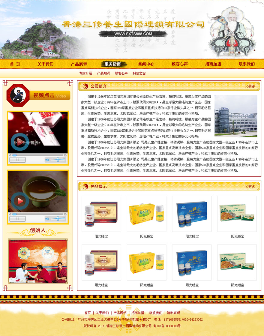 項(xiàng)目名稱:香港三修養(yǎng)生國(guó)際連鎖有限公司網(wǎng)站建設(shè)簽定日期:2011年9月27日網(wǎng)站首頁(yè)效果圖:...