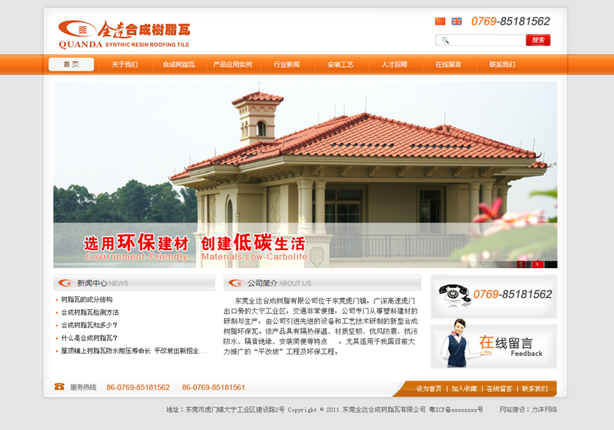 ??? 東莞全達合成樹脂有限公司位于東莞虎門鎮(zhèn),廣深高速虎門出口旁的大寧工業(yè)區(qū),交通非常便捷,公司專門從事塑料建材的研制與生產(chǎn),由公司引進先進的設(shè)備和工藝技術(shù)研制的新型合成樹脂環(huán)保瓦。該產(chǎn)品具有隔熱保溫、材質(zhì)堅韌、抗風(fēng)防震、抗污防水、隔音絕緣、安裝簡便等特點,尤其適用于我國目前大力推廣的“平改坡”工程及環(huán)保工程。