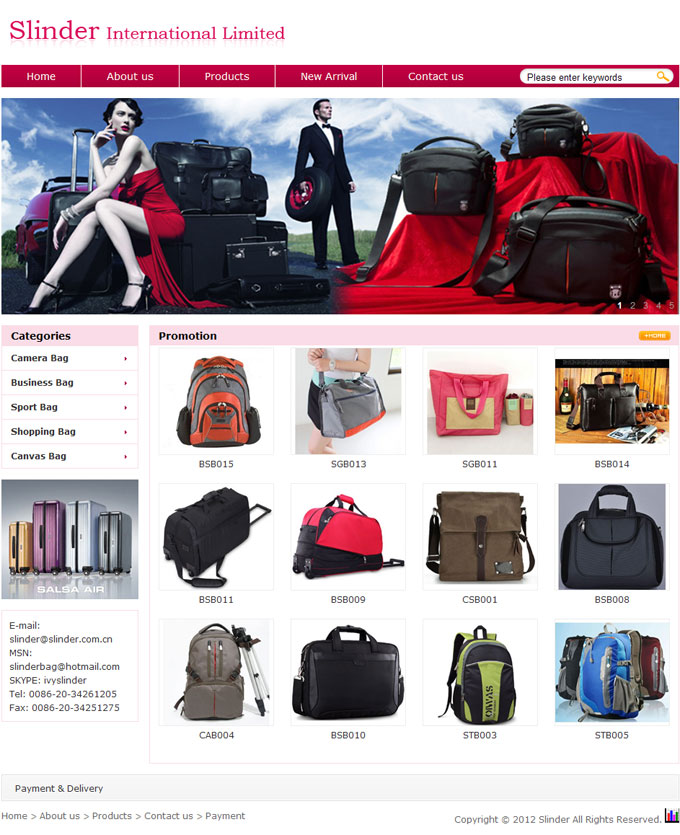 Slinder International Ltd. is a professional bag manufacturing company in China, our factory located in FoShan Nahai, sale office is in GuangZhou which named Slinder International Ltd.