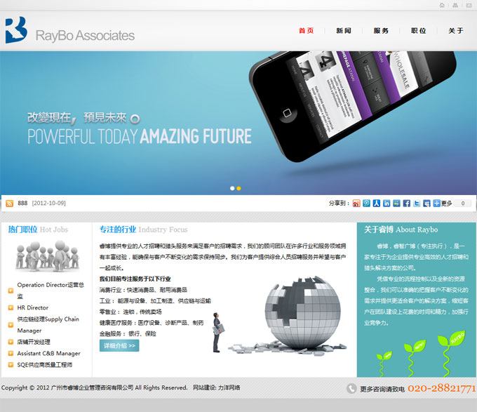 項目名稱:廣州市睿博企業(yè)管理咨詢有限公司簽定日期:2012年9月5日網址:http://www.raybo.net.cn...