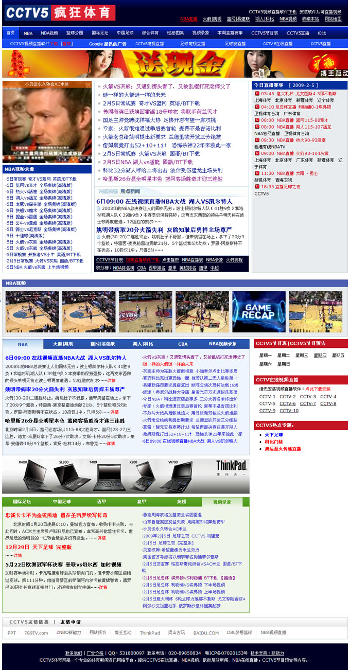 度過了奧運(yùn)年,WWW.CCTV5.COM.CN 網(wǎng)站需要重新整合欄目?jī)?nèi)容和修改網(wǎng)站美化,該工作由我方負(fù)責(zé),并且該工作于2月5日順利完成,通過驗(yàn)收,交付使用。