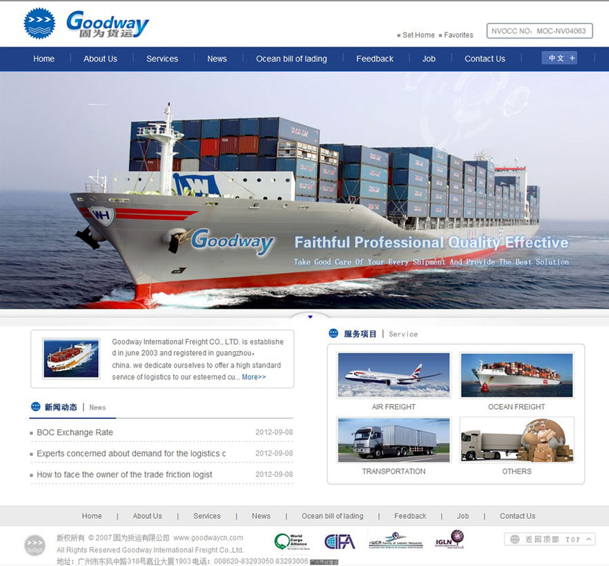 GOODWAY INTERNATIONAL FREIGHT CO., LTD.is established in June 2003 and registered in Guangzhou,China.We dedicate ourselves to offer a high standard service of logistics to our esteemed customers in Middle East, Southeast Asia, Persian Gulf, India, Pakistan and so on. Goodway local service throughout Guangdong Province, including Shenzhen, Guangzhou, and Pearl River area.