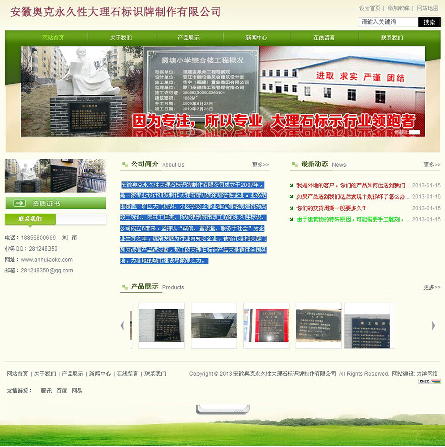 項(xiàng)目名稱:安徽奧克永久性大理石標(biāo)識(shí)牌制作有限公司網(wǎng)站建設(shè)