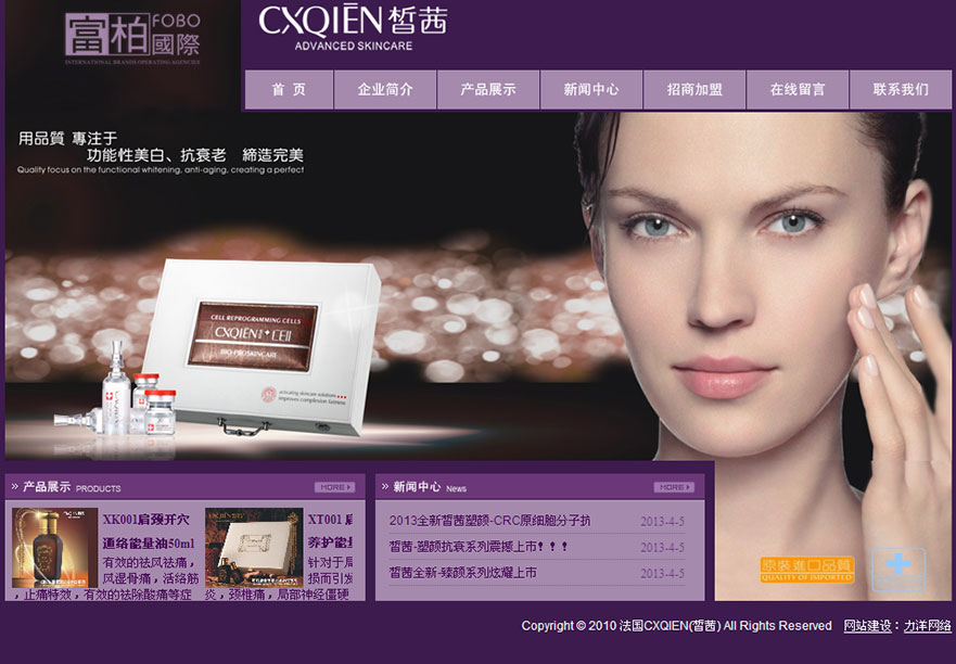 ??? 廣州富柏化妝品有限公司(富柏國際)是法國富柏國際集團(tuán)的子公司,創(chuàng)業(yè)2005年。以美容化妝品及美容儀器為主,負(fù)責(zé)中港澳市場的品牌推廣、教育服務(wù)。憑借前瞻決策,根據(jù)中國特色及準(zhǔn)確定位,三個美容品牌陸續(xù)占領(lǐng)市場。2005年初,引進(jìn)歐利萊,走代理制,截止目前已簽訂二十個省級代理,年回款額八百萬多萬。2008年,皙茜臻顏系列進(jìn)入中國。2011年,皙茜塑顏順應(yīng)市場開始推廣。2013年初,塑顏CRC系列重磅推出,直擊高端美容店。