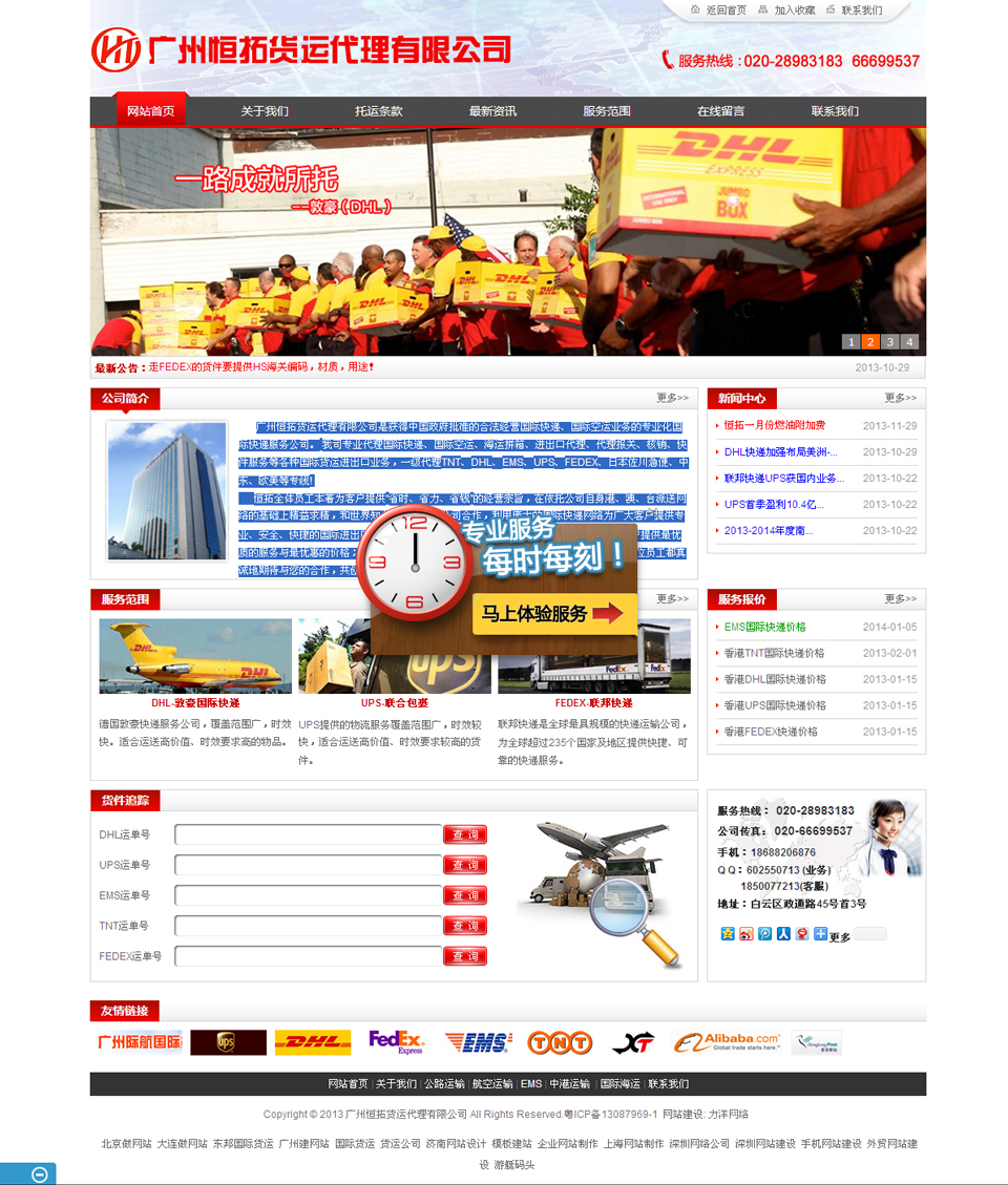 廣州恒拓貨運(yùn)代理有限公司是獲得中國政府批準(zhǔn)的合法經(jīng)營國際快遞、國際空運(yùn)業(yè)務(wù)的專業(yè)化國際快遞服務(wù)公司。我司專業(yè)代理國際快遞、國際空運(yùn)、海運(yùn)拼箱、進(jìn)出口代理、代理報(bào)關(guān)、核銷、快件服務(wù)等各種國際貨運(yùn)進(jìn)出口業(yè)務(wù),一級(jí)代理TNT、DHL、EMS、UPS、FEDEX、日本佐川急便、中東、歐美等專線!