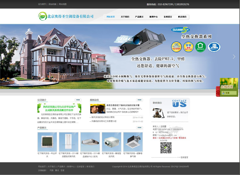 北京奧得圣空調設備有限公司致力于提供高效節(jié)能、舒適環(huán)保新風系統(tǒng)系列產品及中央空調系統(tǒng)系列產品。