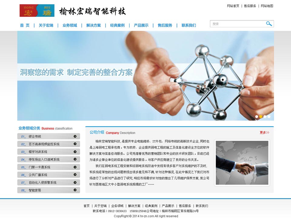 榆林宏瑞智能科技有限公司成立于2006年5月,位于常樂南路24號,注冊于榆林市工商行政管理局,注冊資本金1000萬元。 公司現(xiàn)有職員35名,其中大專以上文化22人,高級工程師4名,建筑智能化項目經(jīng)理3人。2009年榮獲省公安廳頒發(fā)的安防行業(yè)施工《三級資質(zhì)》,2010年榮獲省公安廳頒發(fā)的安防行業(yè)施工的《二級資質(zhì)》,并被省安防協(xié)會評選為《2009年度省級優(yōu)秀企業(yè)》稱號,并與2013年榮獲榆林市規(guī)劃局辦發(fā)的建筑智能化專業(yè)承包《三級資質(zhì)》公司主要致力于建筑智能化及自動化控制系統(tǒng)的專業(yè)設(shè)計、施工、維修。主要經(jīng)營辦公自動化設(shè)備、智能樓宇對講系統(tǒng)、閉路電視監(jiān)控系統(tǒng)、防盜報警系統(tǒng)、背景音樂及公共廣播系統(tǒng)、停車場管理系統(tǒng) 、門禁考勤一卡通系統(tǒng)、網(wǎng)絡(luò)綜合布線、小區(qū)智能化、DLCD大屏幕拼接等等系統(tǒng)工程。