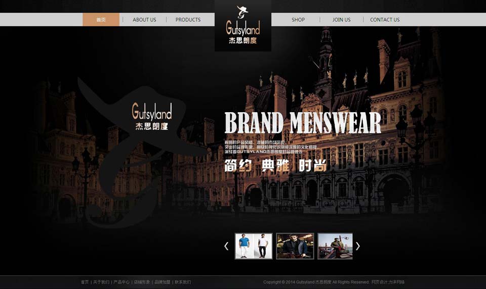 “杰”脫穎而出者;“思”睿智智慧者。寓意杰出的人總是智慧根源。Gutsyland杰思朗度一個(gè)融合英倫時(shí)尚獨(dú)特魅力的男裝品牌.走過冬天嚴(yán)寒,春天的欣榮,夏日的酷熱,秋日的收獲,賦予了他英倫貴族般的華麗,歐洲的典雅。同時(shí),也讓他懂得充分利用自身及周邊的資源,發(fā)揮自己最大的潛能,去開拓Gutsyland杰思朗度......