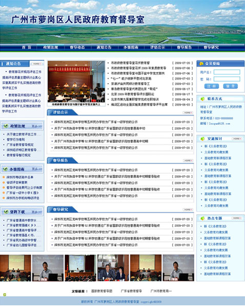 項(xiàng)目名稱:廣州市蘿崗區(qū)人民政府教育督導(dǎo)室簽定日期:2009年8月21日網(wǎng)站首頁(yè)效果圖:...
