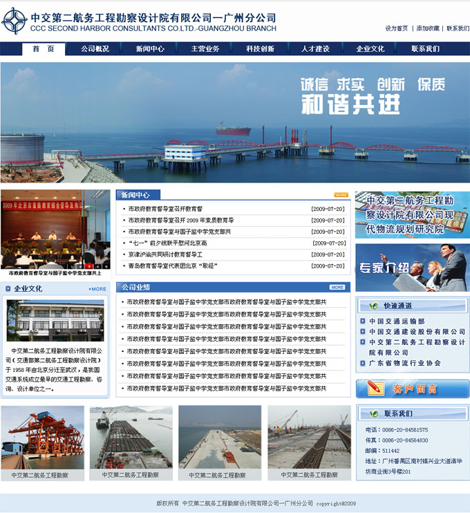 項(xiàng)目名稱:中交第二航務(wù)工程勘察設(shè)計(jì)有限公司廣州分公司網(wǎng)站建設(shè)簽定日期:2009年8月24日網(wǎng)站首頁(yè)效果...