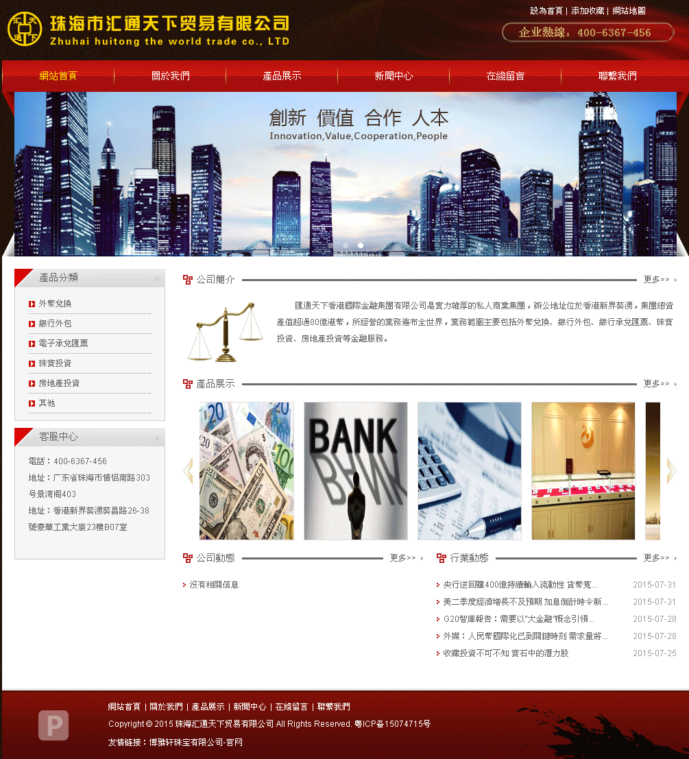 珠海匯通天下貿(mào)易有限公司在瞬息萬變的金融市場能為客戶提供有效的金融市場解決方案,根據(jù)國內(nèi)外客戶的不同需求,在深入分析行業(yè)和市場的基礎(chǔ)上,為客戶設(shè)計各種高質(zhì)量的金融產(chǎn)品和有效的實(shí)施方案助客戶借助我公司這壹鏈接國內(nèi)和國際金融市場的橋梁,實(shí)現(xiàn)經(jīng)濟(jì)發(fā)展新目標(biāo)。
