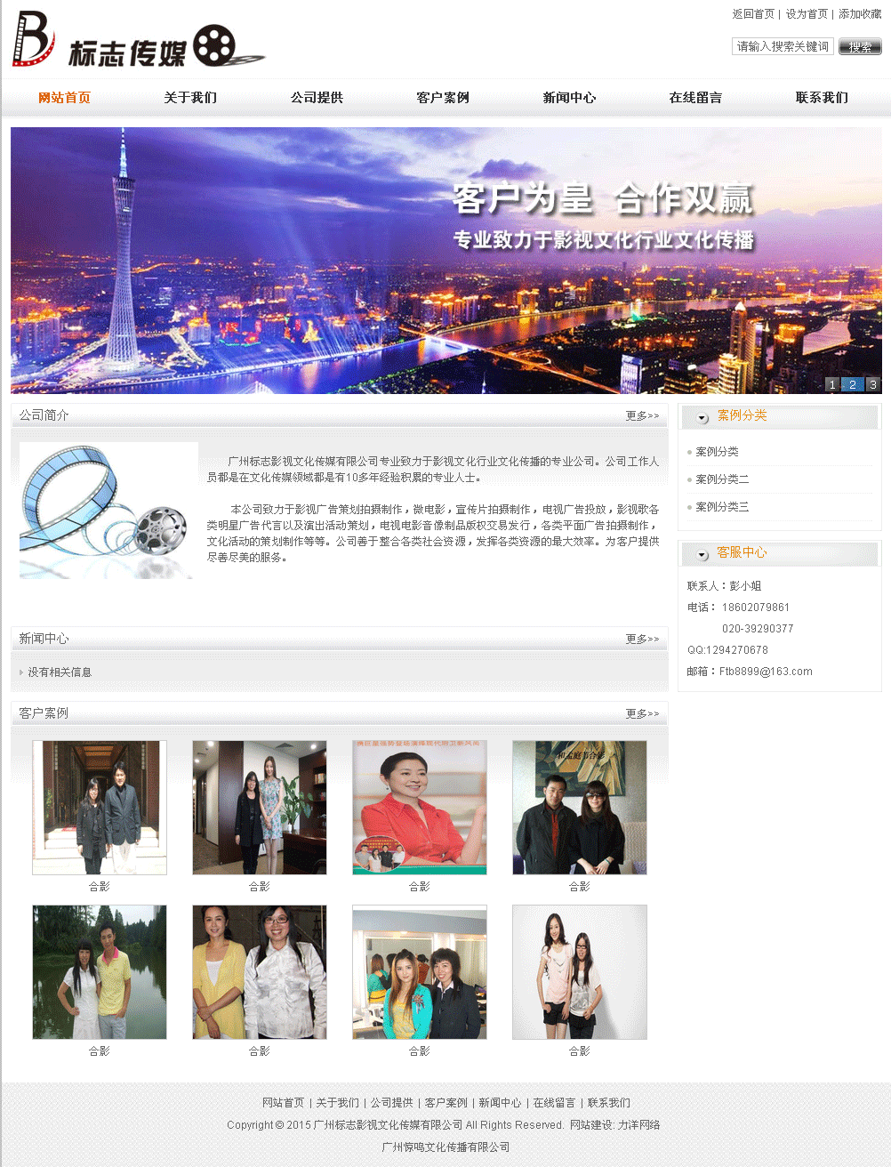 廣州標(biāo)志影視文化傳媒有限公司致力于影視廣告策劃拍攝制作,微電影,宣傳片拍攝制作,電視廣告投放,影視歌各類明星廣告代言以及演出活動(dòng)策劃,電視電影音像制品版權(quán)交易發(fā)行,