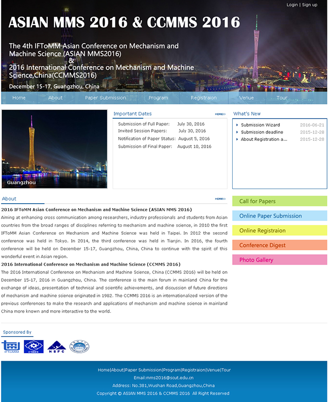 項目名稱:ASIAN MMS 2016 & CCMMS 2016網(wǎng)站建設(shè)
