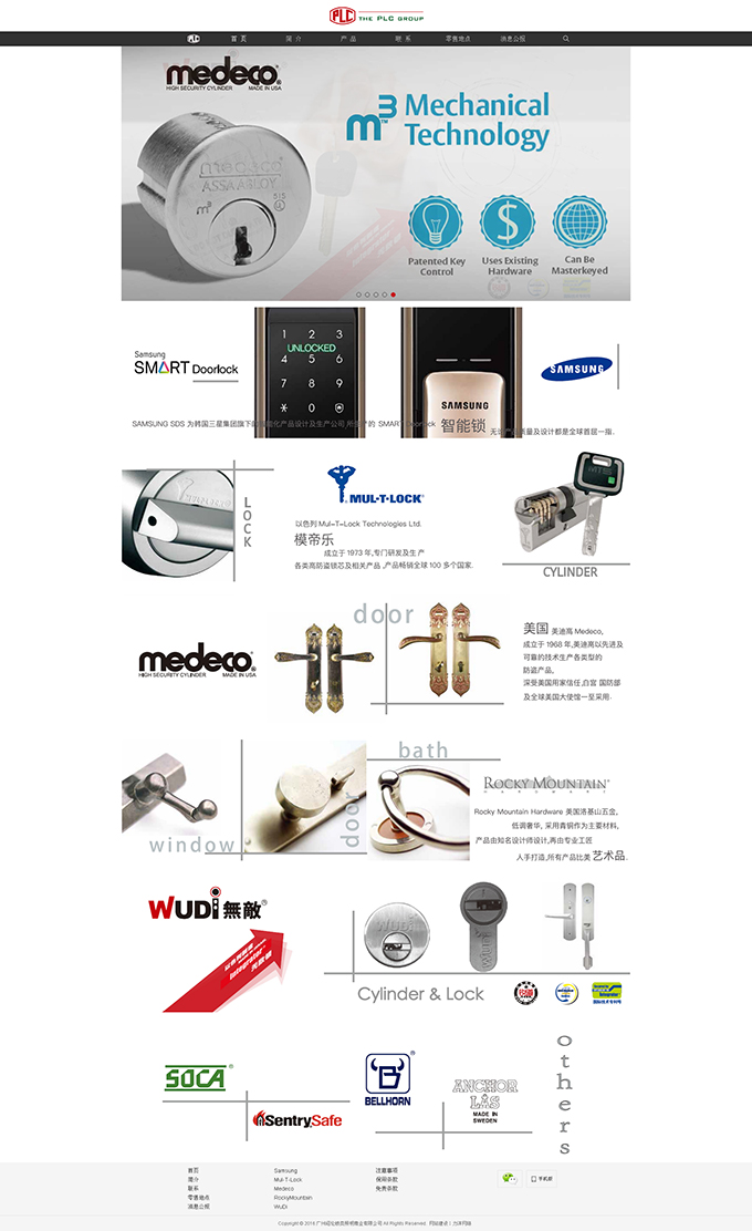 廣州紹倫鎖類(lèi)照明商業(yè)有限公司"為香港PLC集團(tuán)之附屬公司,負(fù)責(zé)中國(guó)國(guó)內(nèi)之防盜產(chǎn)品分銷(xiāo)工作,提供的產(chǎn)品有﹕Medeco美迪高門(mén)鎖、Mul-T-Lock模帝樂(lè)防盜門(mén)鎖、WuDi無(wú)敵鎖、Samsung三星電子鎖等。