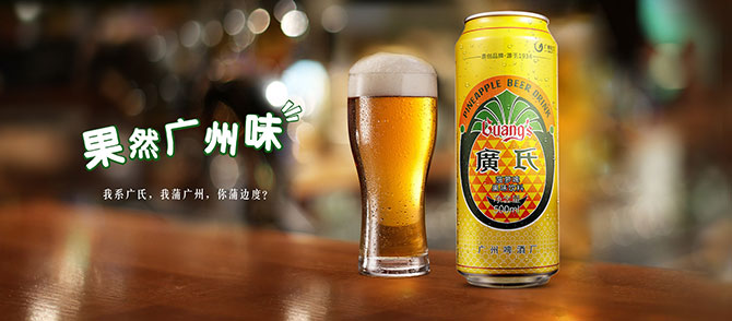 廣氏菠蘿啤是國內(nèi)始創(chuàng)品牌,也是中國第一個果味啤酒飲料。以啤酒為基礎(chǔ)的菠蘿香型飲料,是極具嶺南特色的一款飲料,它以麥芽、大米、砂糖、酒花等為原料,將啤酒醇厚的麥香,與嶺南佳果——優(yōu)質(zhì)甜心菠蘿成熟一刻散發(fā)的芬芳完美結(jié)合,經(jīng)蒸煮、糖化、發(fā)酵,并以科學(xué)方法精制而成。以其果香濃郁、酸甜適中、營養(yǎng)豐富,口味清新怡神的獨特風(fēng)格,在華南地區(qū)深受消費者的青睞,產(chǎn)品先后被評為深受廣州市民歡迎的啤酒類酒品和廣州十大手信。