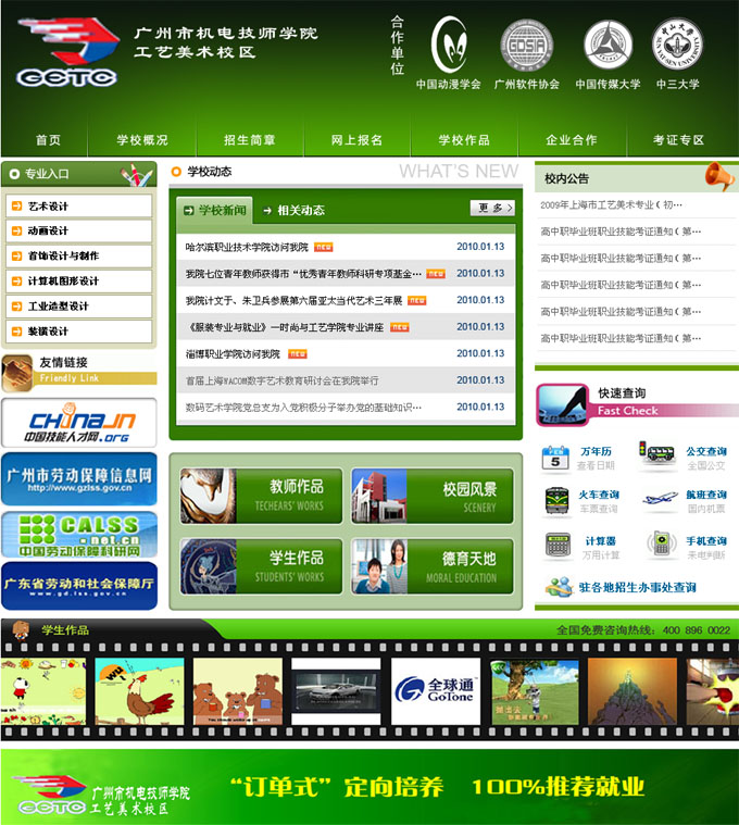 項目名稱:廣州機電技師學(xué)院工藝美術(shù)校區(qū)網(wǎng)站建設(shè)簽定日期:2010年3月9日網(wǎng)站首頁效果:...