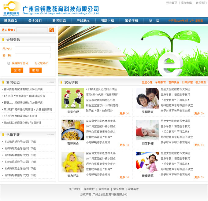 項(xiàng)目名稱:廣州金鑰匙教育科技有限公司網(wǎng)站建設(shè)簽定日期:2010年3月15日網(wǎng)站首頁(yè)設(shè)計(jì)效果:...