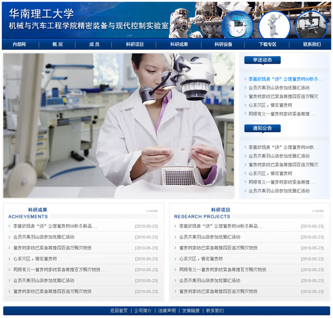 項目名稱:華南理工大學機械與汽車學院精密裝備與現(xiàn)代控制實驗室網(wǎng)站建設