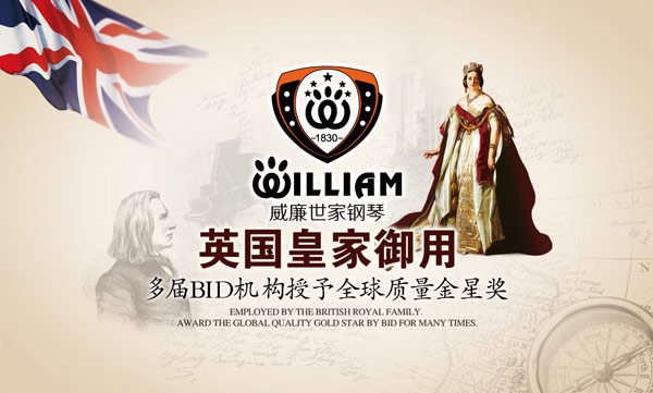 ? ? ? ?1958年,作為英國皇室用琴,威廉世家鋼琴其卓越的音色和穩(wěn)定性贏得了英國鋼琴銷售協(xié)會(huì)最佳銷售獎(jiǎng)和多屆BID機(jī)構(gòu)授予的全球質(zhì)量金星獎(jiǎng)(International Star For Quality)。