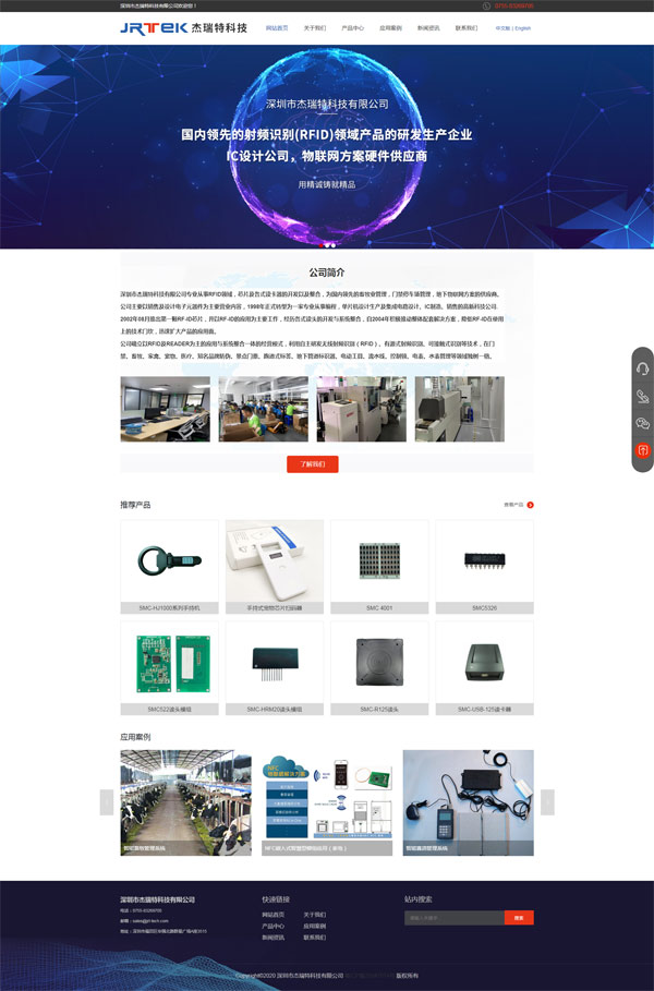 深圳市杰瑞特科技有限公司專業(yè)從事RFID領(lǐng)域,芯片及各式讀卡器的開發(fā)以及整合,為國(guó)內(nèi)領(lǐng)先的畜牧業(yè)管理,門禁停車場(chǎng)管理,地下物聯(lián)網(wǎng)方案的供應(yīng)商。公司主要以銷售及設(shè)計(jì)電子元器件為主要營(yíng)業(yè)內(nèi)容,1998年正式轉(zhuǎn)型為一家專業(yè)從事編程,單片機(jī)設(shè)計(jì)生產(chǎn)及集成電路設(shè)計(jì)、IC制造、銷售的高新科技公司. 2002年08月推出第一顆RF-ID芯片,并以RF-ID的應(yīng)用為主要工作,經(jīng)歷各式讀頭的開發(fā)與系統(tǒng)整合,自2004年起積極推動(dòng)整體配套解決方案,降低RF-ID在使用上的技術(shù)門坎,迅速擴(kuò)大產(chǎn)品的應(yīng)用面。