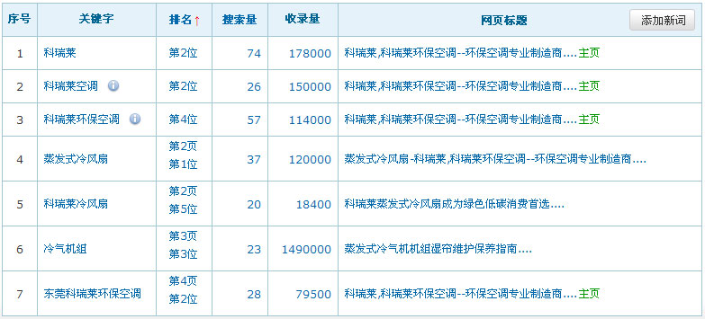關(guān)鍵詞在百度排名數(shù)據(jù):