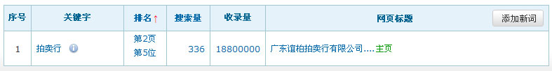 關(guān)鍵詞在百度排名數(shù)據(jù):