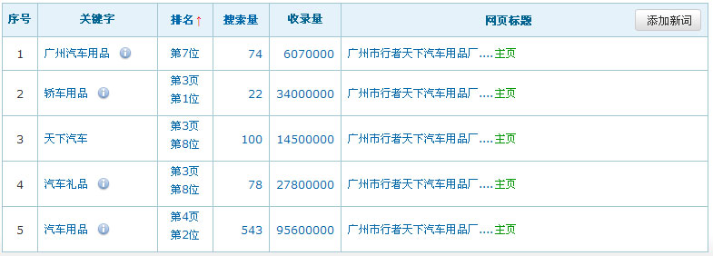 關(guān)鍵詞在百度排名數(shù)據(jù):