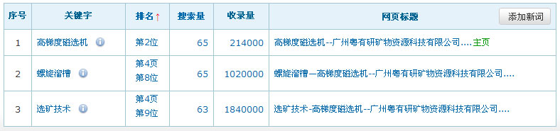 關(guān)鍵詞在百度排名數(shù)據(jù):(暫時只列出百度的排名數(shù)據(jù),其它搜索引擎的排名效果暫不列出)