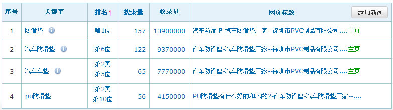 關(guān)鍵詞在百度排名數(shù)據(jù):(暫時只列出百度的排名數(shù)據(jù),其它搜索引擎的排名效果暫不列出)