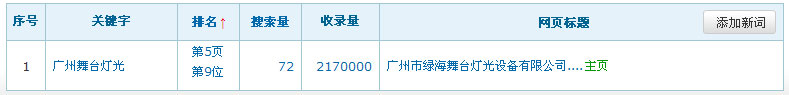 關(guān)鍵詞在百度排名數(shù)據(jù):(暫時(shí)只列出百度的排名數(shù)據(jù),其它搜索引擎的排名效果暫不列出)