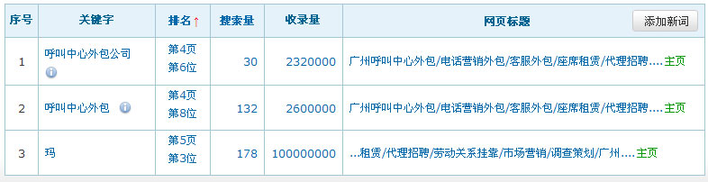 關(guān)鍵詞在百度排名數(shù)據(jù):(暫時(shí)只列出百度的排名數(shù)據(jù),其它搜索引擎的排名效果暫不列出)