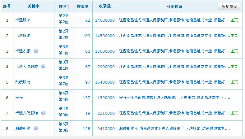關(guān)鍵詞在百度排名數(shù)據(jù):(暫時只列出百度的排名數(shù)據(jù),其它搜索引擎的排名效果暫不列出)