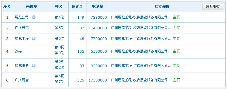 關(guān)鍵詞在百度排名數(shù)據(jù):(暫時只列出百度的排名數(shù)據(jù),其它搜索引擎的排名效果暫不列出)