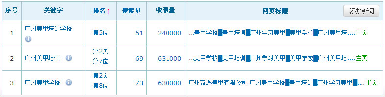 關(guān)鍵詞在百度排名數(shù)據(jù):(暫時只列出百度的排名數(shù)據(jù),其它搜索引擎的排名效果暫不列出)