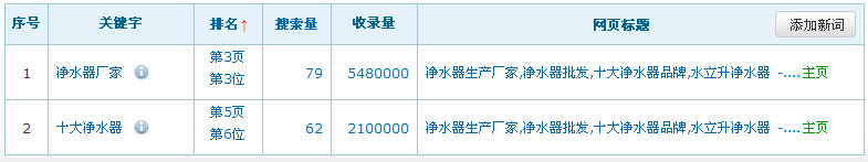 關(guān)鍵詞在百度排名數(shù)據(jù):(暫時(shí)只列出百度的排名數(shù)據(jù),其它搜索引擎的排名效果暫不列出)