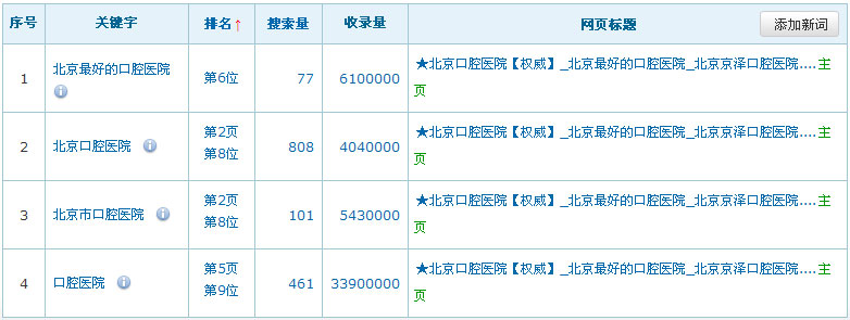 關(guān)鍵詞在百度排名數(shù)據(jù):(暫時只列出百度的排名數(shù)據(jù),其它搜索引擎的排名效果暫不列出)
