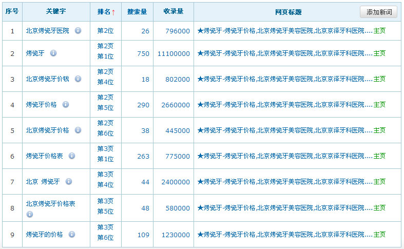 關(guān)鍵詞在百度排名數(shù)據(jù):(暫時只列出百度的排名數(shù)據(jù),其它搜索引擎的排名效果暫不列出)