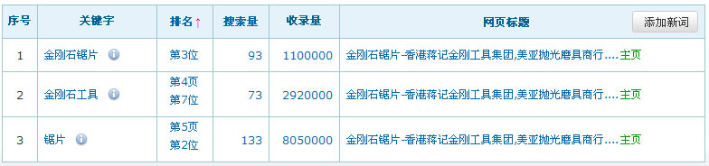 關(guān)鍵詞在百度排名數(shù)據(jù):(暫時(shí)只列出百度的排名數(shù)據(jù),其它搜索引擎的排名效果暫不列出)